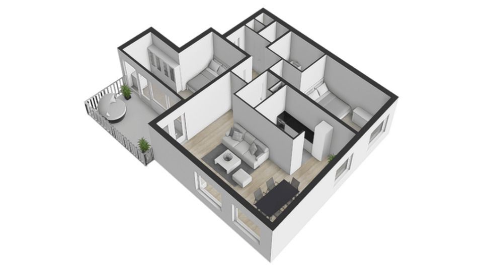 Binnenkomst in een hal die toegang biedt tot alle ruimtes. De woonkamer is opvallend licht dankzij de grote raampartijen en beschikt over openslaande deuren naar het balkon, waar u heerlijk van de middag- en avondzon kunt genieten.