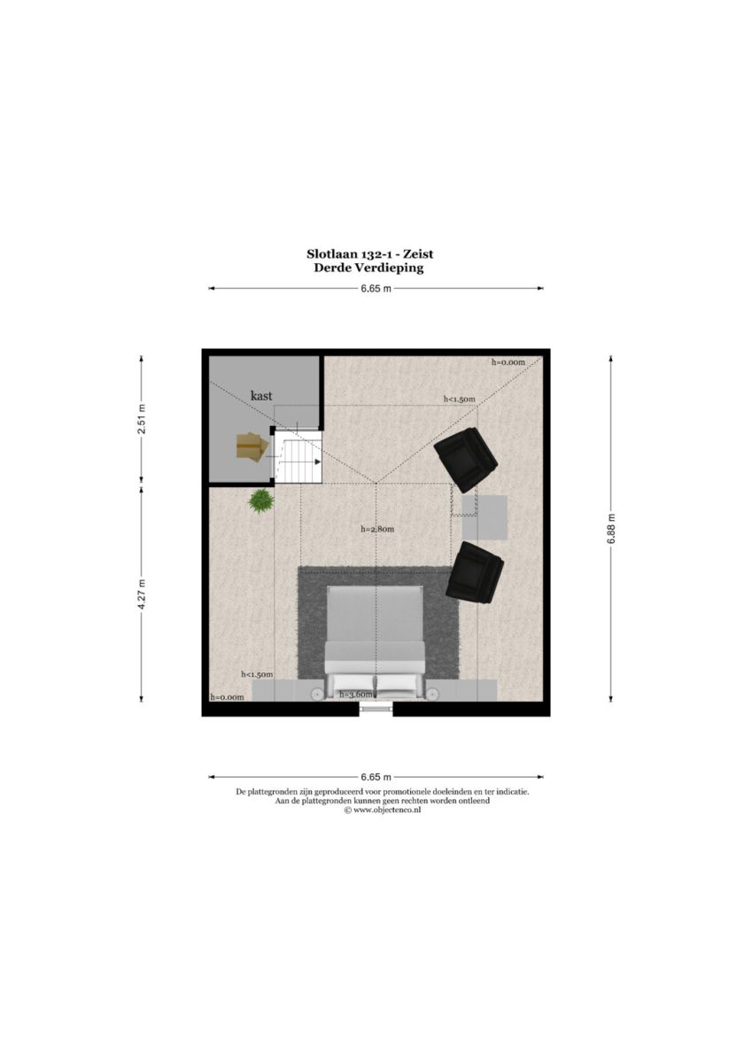 3e VERDIEPING: De derde etage is thans 1 grote ruimte, maar biedt de mogelijkheid tot extra royale slaapkamer(s).