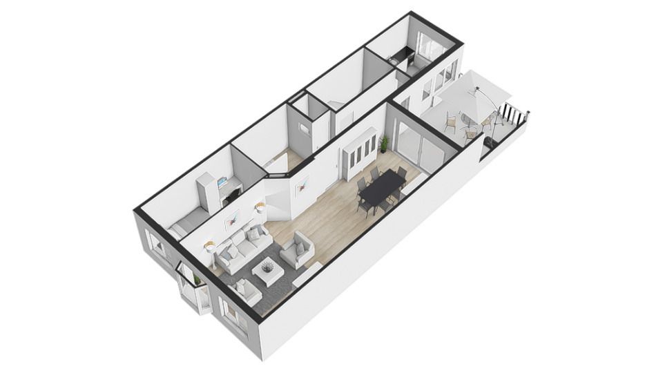 - Voor- en achterhuis nog integreren;