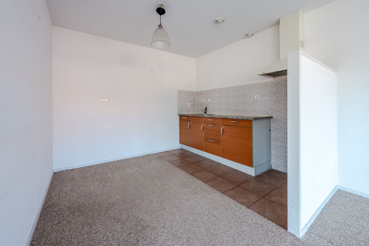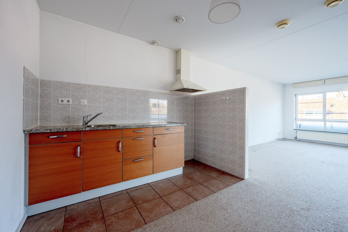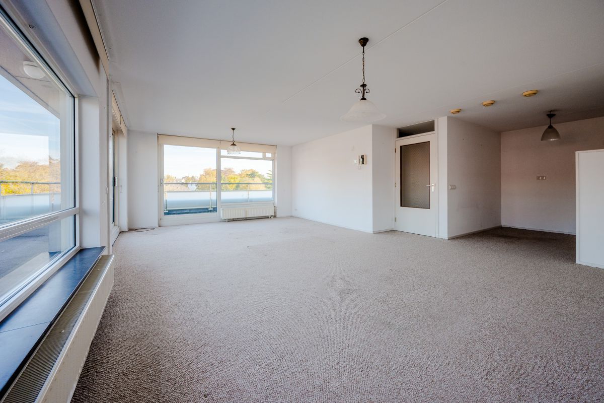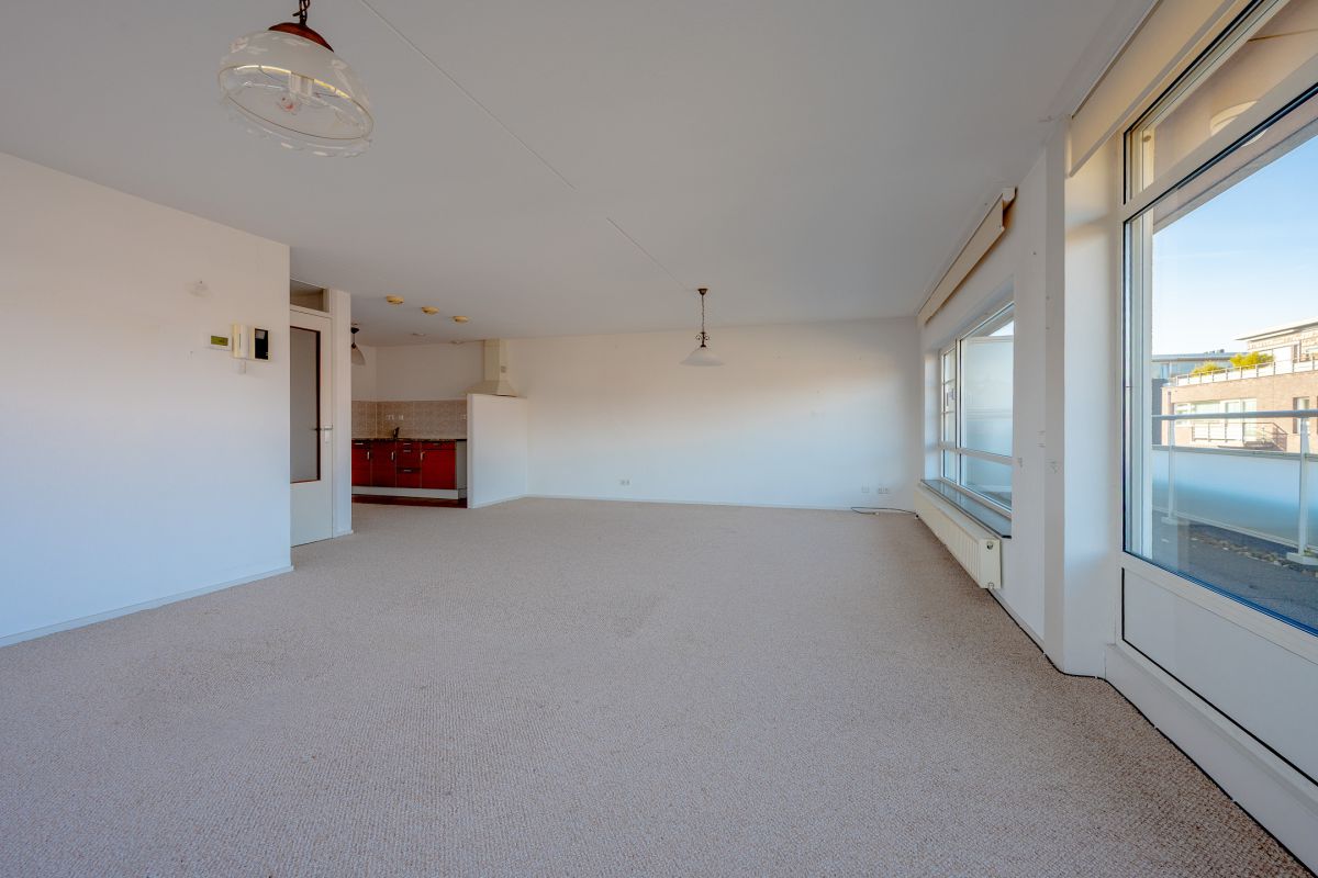 Dit ruime appartement heeft een woonoppervlakte van 86 m2. Er is een royale, lichte woonkamer met grote raampartijen die zorgen voor veel natuurlijke lichtinval. De keuken is eenvoudig en heeft geen inbouwapparatuur. Er is één ruime slaapkamer, een nette badkamer en separaat toilet met fonteintje. Het appartement heeft twee bergingen in de woning en één in de kelder. Er is directe toegang vanuit de woonruimte tot het heerlijke dakterras.