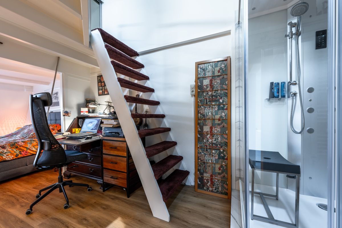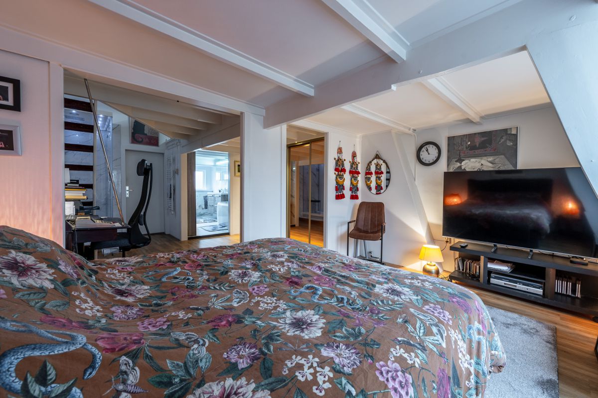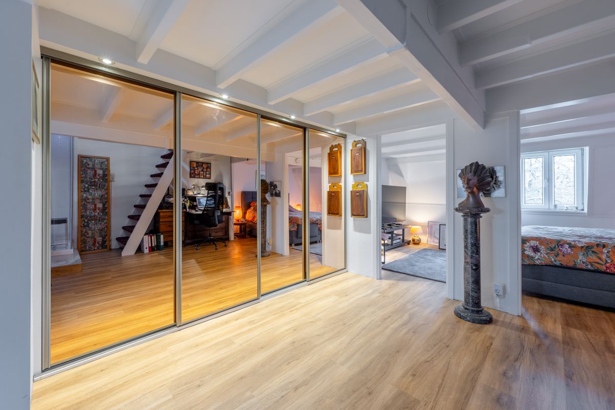 Deze verdieping bestaat uit een grote open ruimte in loftstijl, ideaal als werk- of hobbyruimte, met een vaste spiegelkastenwand. Daarnaast is er een zeer royale slaapkamer met eigen douche en een tweede moderne badkamer (2022), voorzien van ligbad, toilet, dubbele wastafel en pissoir.